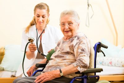 Young nurse and female senior in nursing home